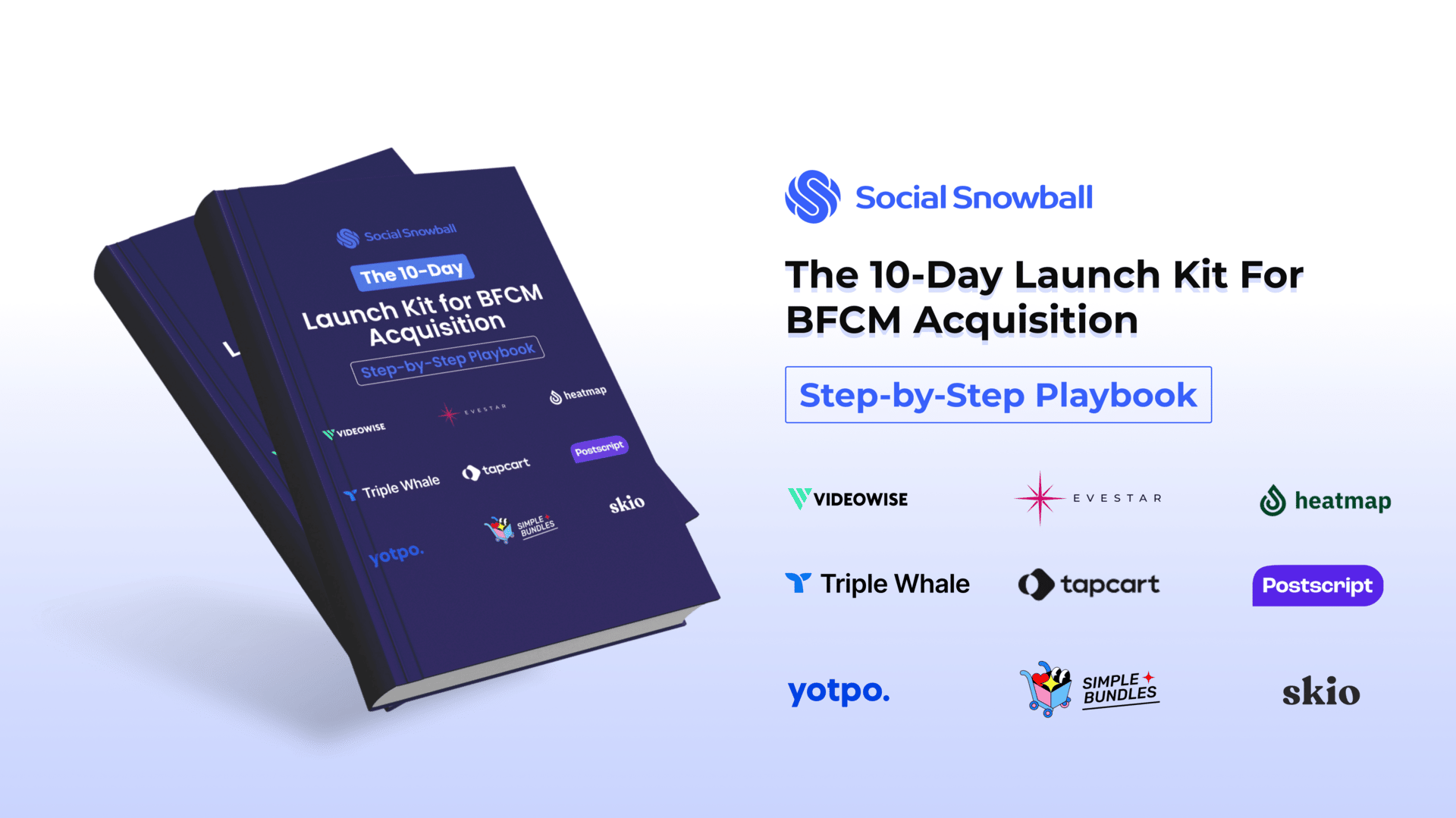 So we teamed up with 9 leading ecom experts including Social Snowball, Yotpo, Triple Whale, Tapcart, Postscript, Videowise, Skio, Evestar and Simple Bundles to create “The 10-Day Launch Kit for BFCM Acquisition.”